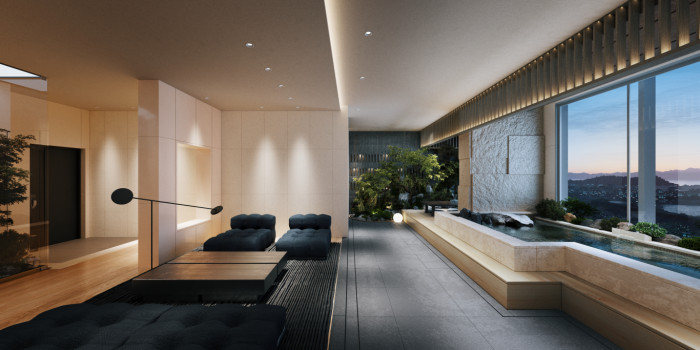 <사진: 부산 ‘블랑 써밋 74’의 ‘45워터스테이’ 조감도, 오션뷰를 바라보며 프라이빗 스파를 즐길 수 있다>