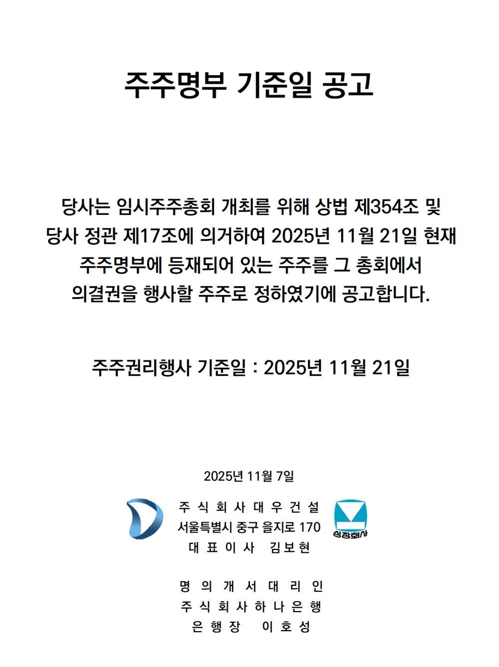 주주명부 기준일 공고
